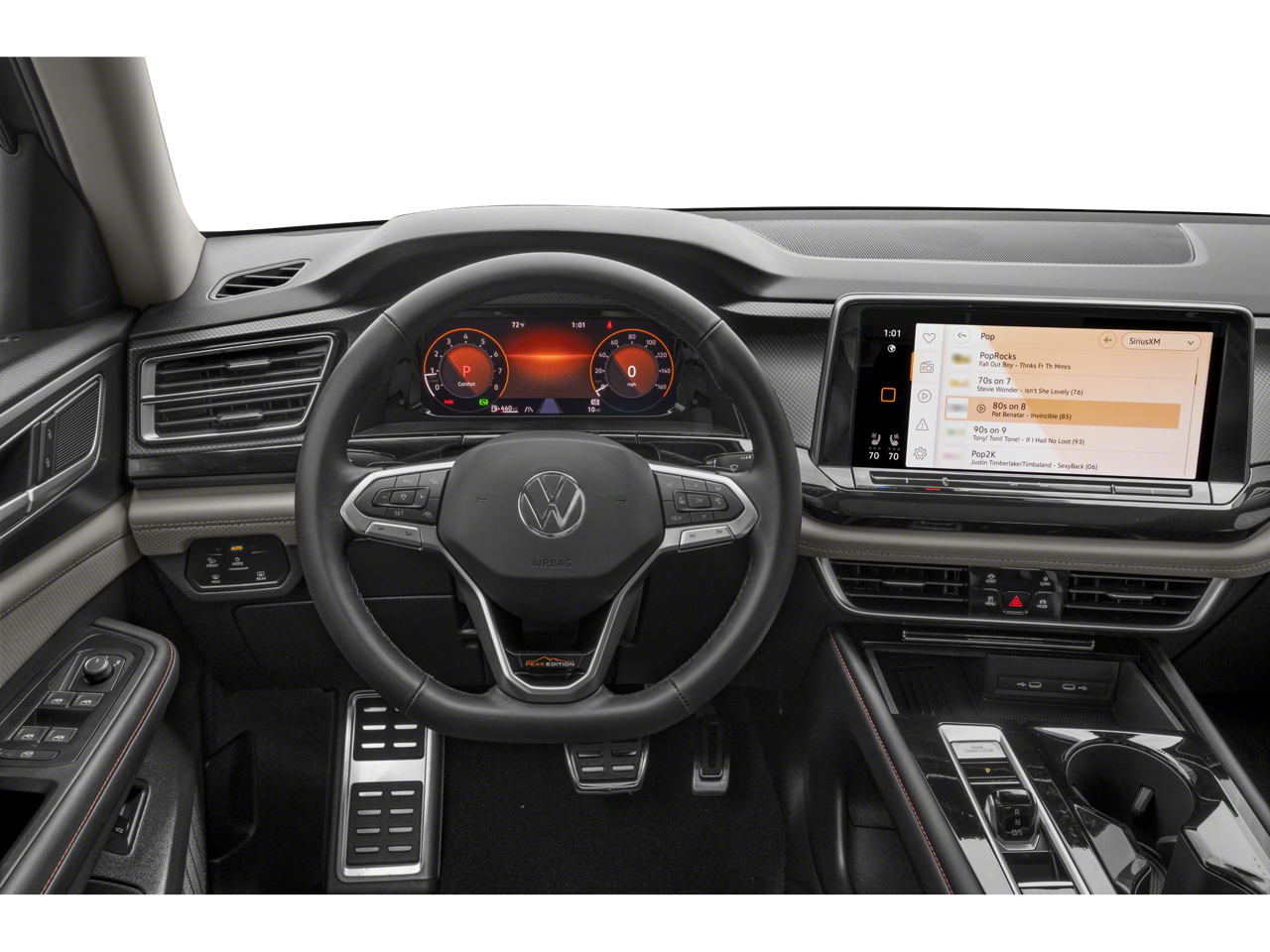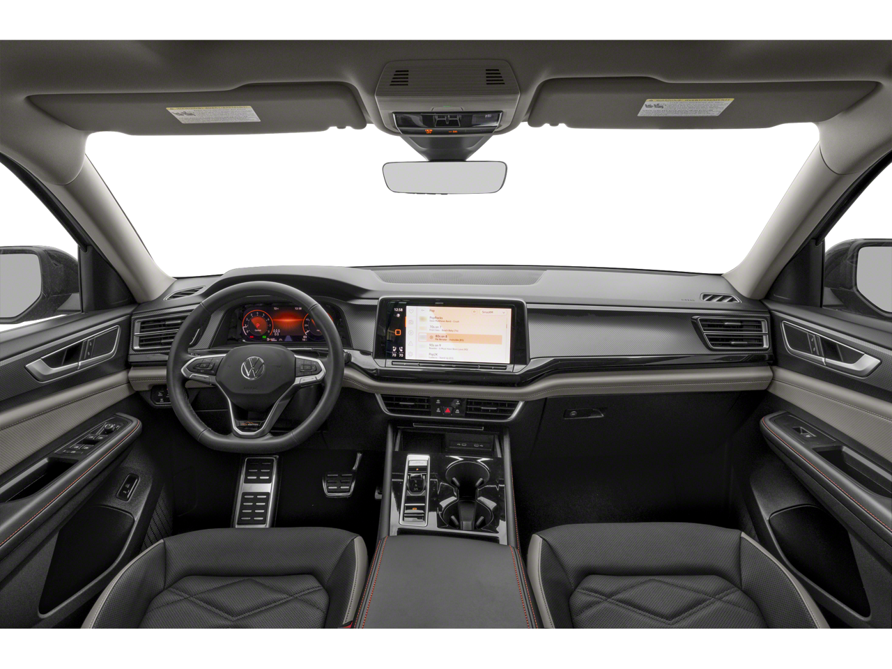 - MIB3 Composition Media -inc: 12" touchscreen multi-function center display, AM/FM/HD radio and WMA/MP3/FLAC player w/USB-C input, voice control, SiriusXM w/360L (w/3-month free trial subscription; 360L services require acceptance of SiriusXM terms), 6-speaker sound system, Bluetooth® connectivity (for compatible devices), capability for in-vehicle 4G LTE enabled Wi-Fi (cellular data plan required; includes limited trial), capability for connected vehicle services (capabilities for services vary; requires enrollment or subscription), App-Connect smartphone integration (w/Apple CarPlay, Android Auto and MirrorLink) via USB, wireless App-Connect smartphone integration (for compatible devices) w/multi-phone pairing capability and Qi wireless inductive charger up to 15W (for compatible mobile phones and accessories) in front row All connected vehicle services subject to terms and limitations. Some services, which include emergency assistance services, require a paid subscription. See dealer or vw.com/connected for important details.