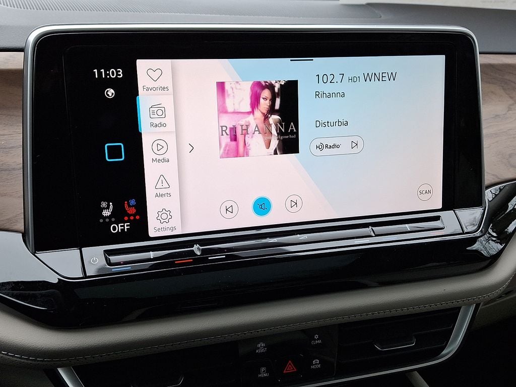- MIB3 Composition Media -inc: 12" touchscreen multi-function center display, AM/FM/HD radio and WMA/MP3/FLAC player w/USB-C input, voice control, SiriusXM w/360L (w/3-month free trial subscription; 360L services require acceptance of SiriusXM terms), 6-speaker sound system, Bluetooth® connectivity (for compatible devices), capability for in-vehicle 4G LTE enabled Wi-Fi (cellular data plan required; includes limited trial), capability for connected vehicle services (capabilities for services vary; requires enrollment or subscription), App-Connect smartphone integration (w/Apple CarPlay, Android Auto and MirrorLink) via USB, wireless App-Connect smartphone integration (for compatible devices) w/multi-phone pairing capability and Qi wireless charger up to 15W (for compatible mobile phones and accessories) in front row All connected vehicle services subject to terms and limitations. Some services, which include emergency assistance services, require a paid subscription. See dealer or vw.com/connected for important details.