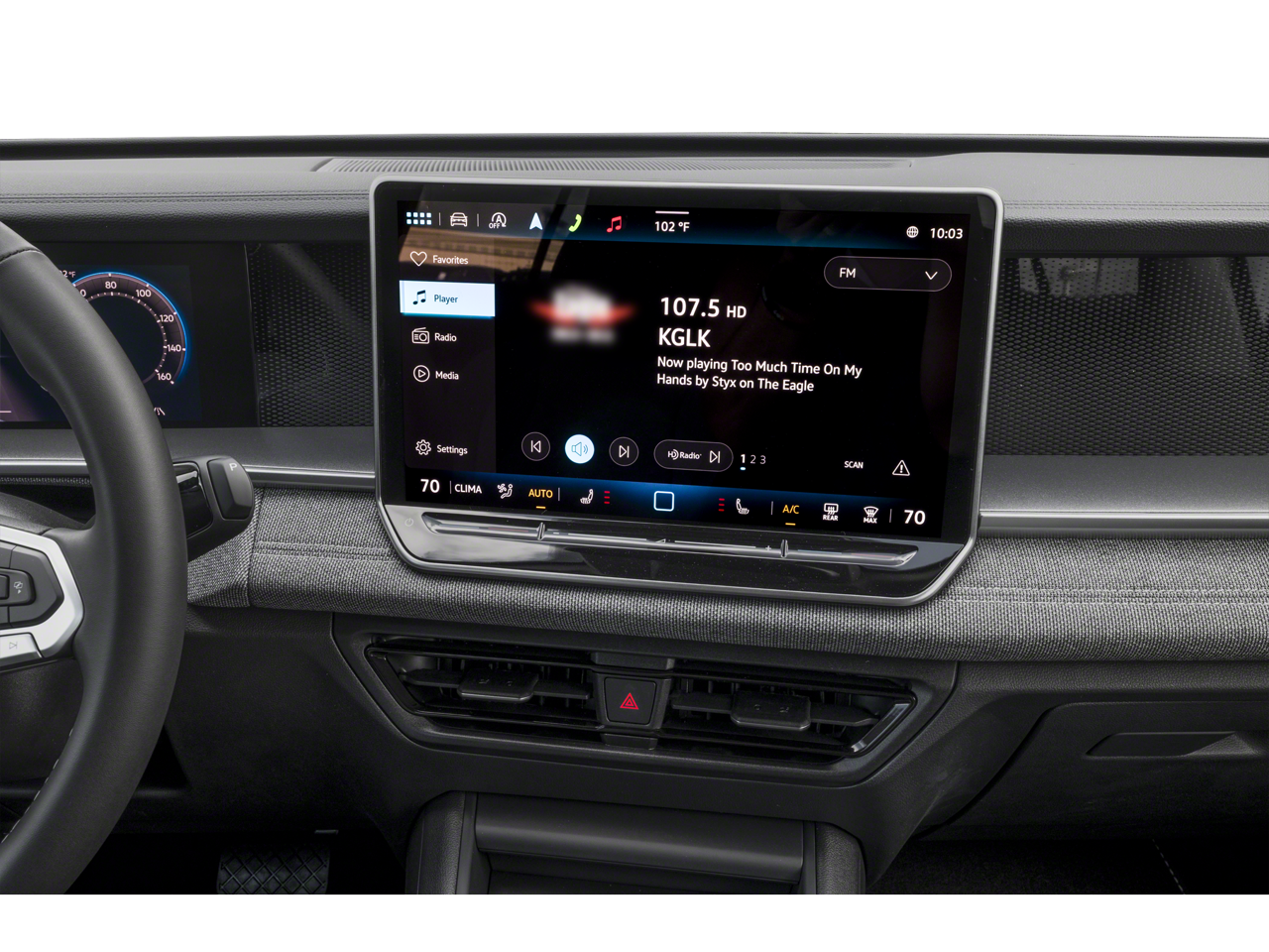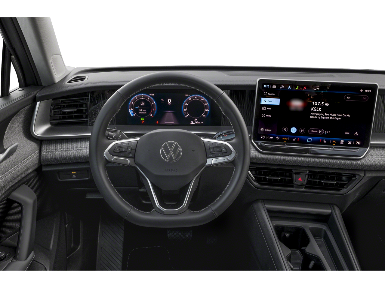 • MIB4 Composition Media Touchscreen w/AM/FM Radio -inc: WMA/MP3/FLAC player w/USB, 12.9" touchscreen multi-function center display w/backlit sliders, voice control, 6 speakers + center speaker (7 speakers total) sound system, capability for in-vehicle 4G LTE enabled Wi-Fi (cellular data plan required; includes limited trial), capability for connected vehicle services (capabilities for services vary; requires enrollment or subscription), Bluetooth® connectivity (for compatible devices), SiriusXM w/360L (w/3-month free trial subscription; 360L services require acceptance of Car-Net terms), App-Connect smartphone integration (w/Apple CarPlay, Android Auto and MirrorLink) via USB, wireless App-Connect smartphone integration (for compatible devices) w/multi-phone pairing capability, 45W fast charging (for compatible mobile phones and accessories) via USB in both rows and Qi wireless inductive charger, cooled, up to 15W (for compatible mobile phones and accessories) All connected vehicle services are subject to terms and limitations. Some services require a paid subscription. See dealer or vw.com/connected for important details.