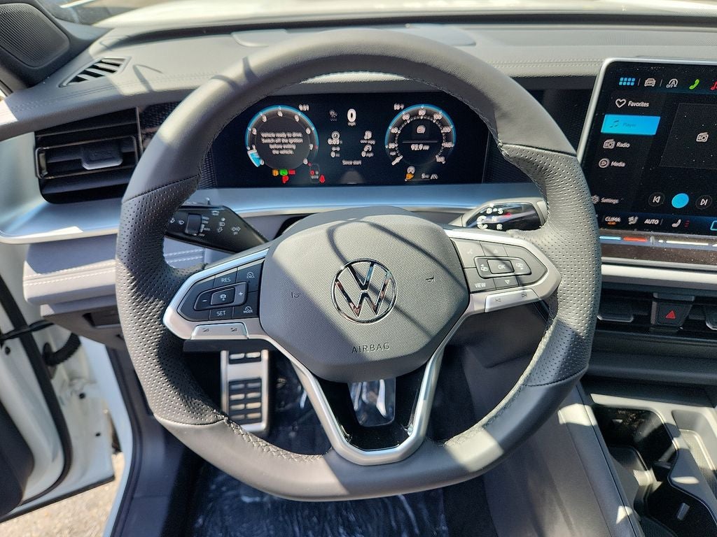 - MIB4 Composition Media Touchscreen w/AM/FM Radio -inc: WMA/MP3/FLAC player w/USB, 12.9" touchscreen multi-function center display w/backlit sliders, voice control, 6 speakers + center speaker (7 speakers total) sound system, capability for in-vehicle 4G LTE enabled Wi-Fi (cellular data plan required; includes limited trial), capability for connected vehicle services (capabilities for services vary; requires enrollment or subscription), Bluetooth® connectivity (for compatible devices), SiriusXM w/360L (w/3-month free trial subscription; 360L services require acceptance of Car-Net terms), App-Connect smartphone integration (w/Apple CarPlay, Android Auto and MirrorLink) via USB, wireless App-Connect smartphone integration (for compatible devices) w/multi-phone pairing capability, 45W fast charging (for compatible mobile phones and accessories) via USB in both rows and Qi wireless inductive charger, cooled, up to 15W (for compatible mobile phones and accessories) All connected vehicle services are subject to terms and limitations. Some services require a paid subscription. See dealer or vw.com/connected for important details.