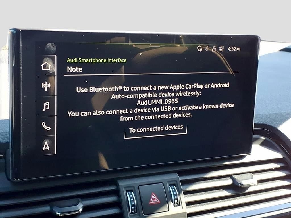 - Radio: Audi Sound System -inc: Audi connect CARE (limited time subscription), Audi smartphone interface w/wireless Apple CarPlay, MMI touch display w/10.1" center screen, preparation for mobile phone (Bluetooth®) and 2 rear USB charge ports